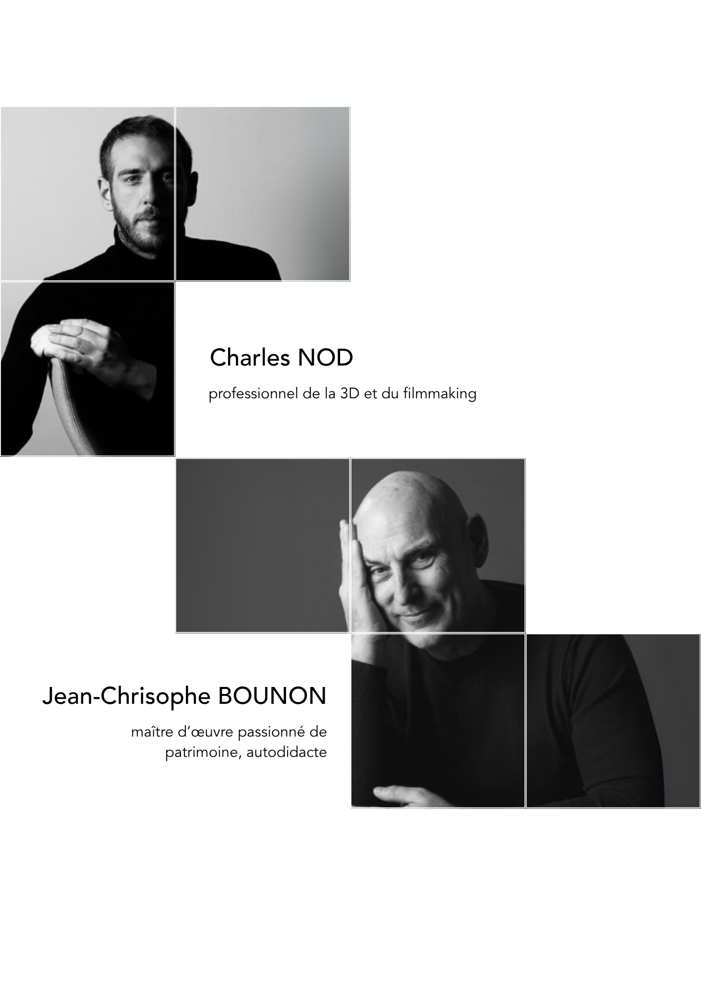 FUJO est né de la rencontre entre Jean-Christophe Bounon, maître d’œuvre passionné de patrimoine, autodidacte du scan, du drone et de la maquette et Charles Chorein, professionnel de la 3D et du filmmaking (ayant collaboré avec les plus grands studios internationaux).